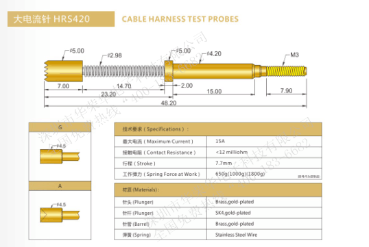 大電流針用于高電流行業(yè)的測試。主要測試、功能測試、信號傳輸、供電、生產(chǎn)期間以及作為內(nèi)置的觸電元件,還有一項(xiàng)應(yīng)用用途是精確測量,針對該用途要用電阻很低的測試探針,所以也叫底電阻探針。