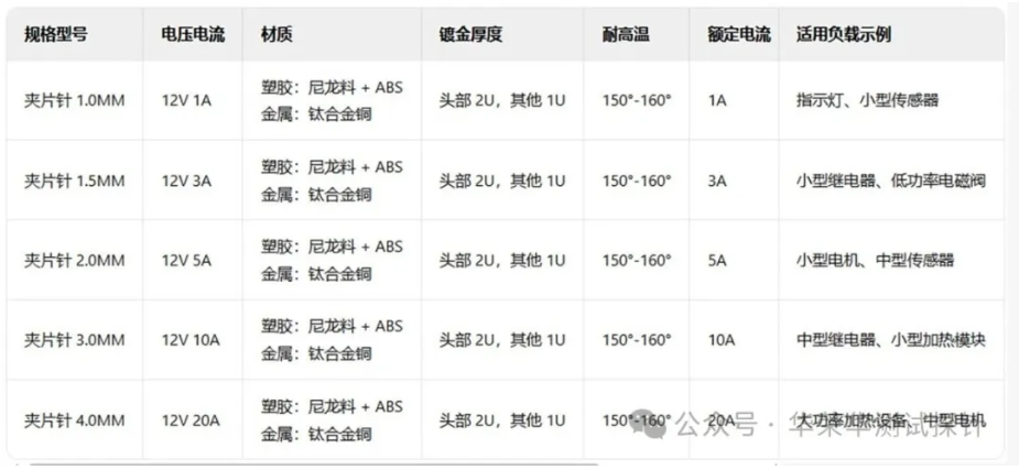 二、夾片針的電流承載:規(guī)格、材質(zhì)與環(huán)境的協(xié)同影響