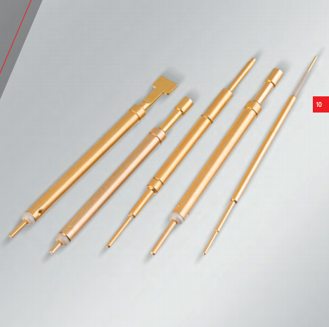 使用華榮華旋轉(zhuǎn)測(cè)試探針,可以確保最佳的待測(cè)物接觸可靠性,無(wú)需額外施加壓力。故此,當(dāng)接觸測(cè)試表面的時(shí)候,通過(guò)旋轉(zhuǎn)測(cè)試探針產(chǎn)品的增加彈簧預(yù)應(yīng)力可使得彈簧力提高100%以上。但是,旋轉(zhuǎn)測(cè)試探針在工作行程方面具