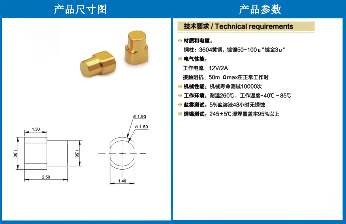 1.9*2.5側(cè)焊銅柱 當(dāng)前位置:首頁 » POGO PIN充電彈簧頂針 » 銅柱系列