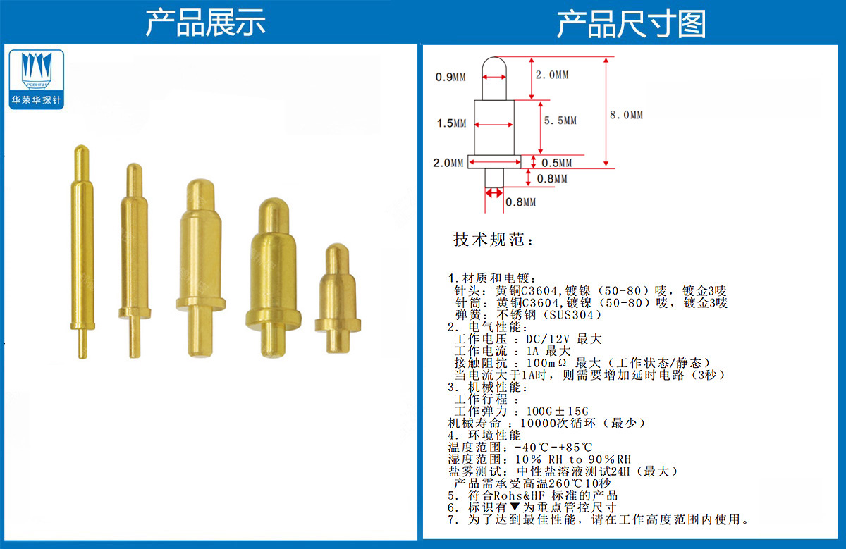 產(chǎn)品介紹:這個(gè)針通常用于智能手表,藍(lán)牙耳機(jī)上的有充電的功能,但是探針總體來(lái)說(shuō)還是測(cè)試的