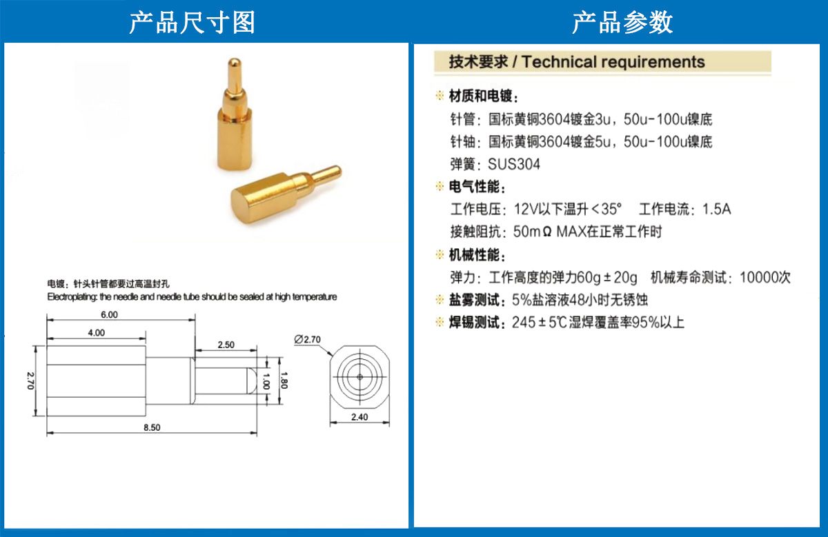 2.7*8.5四方彈針(卷帶) 當(dāng)前位置:首頁 » POGO PIN充電彈簧頂針 » 彈針系列