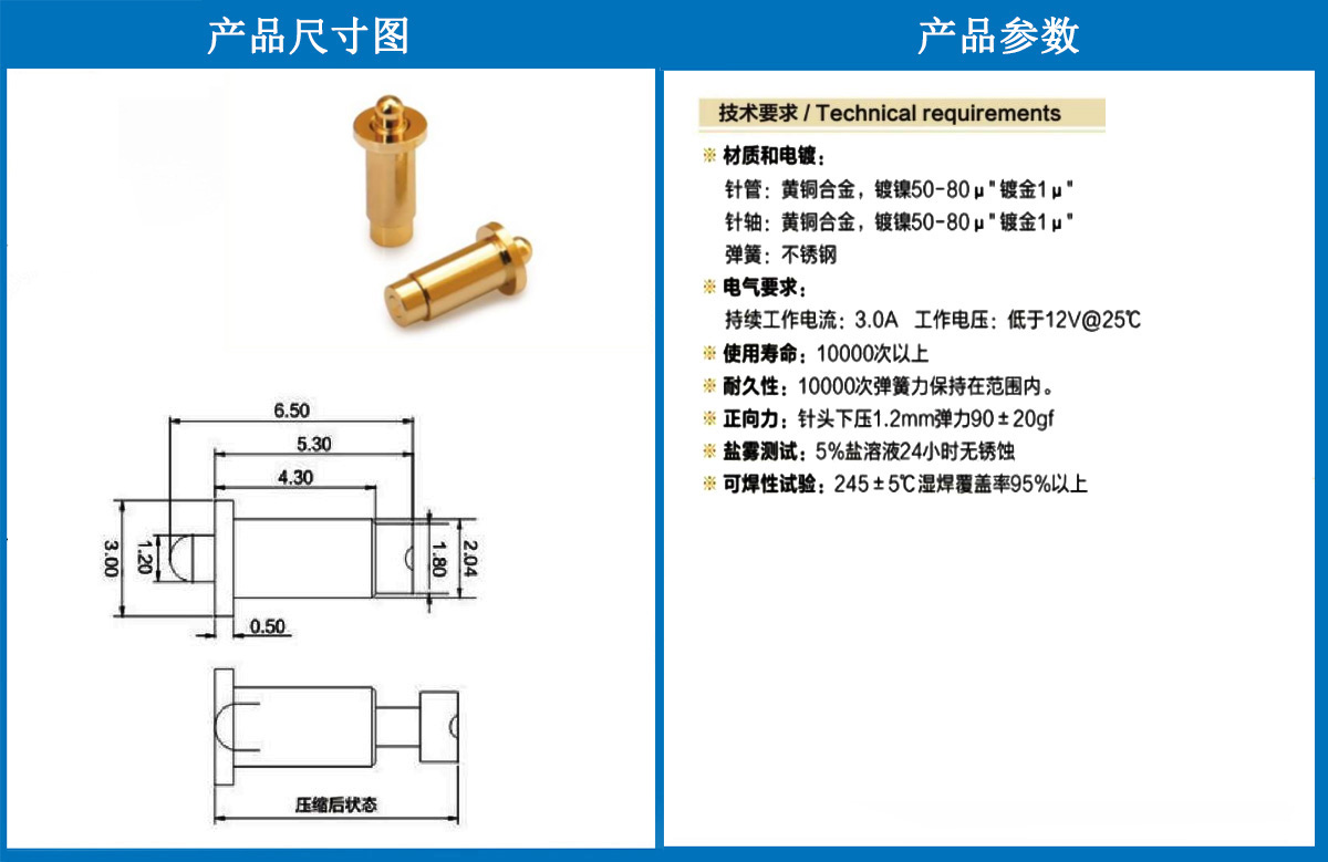 3.0*6.5電極針 當(dāng)前位置:首頁 » POGO PIN充電彈簧頂針 » 電極針