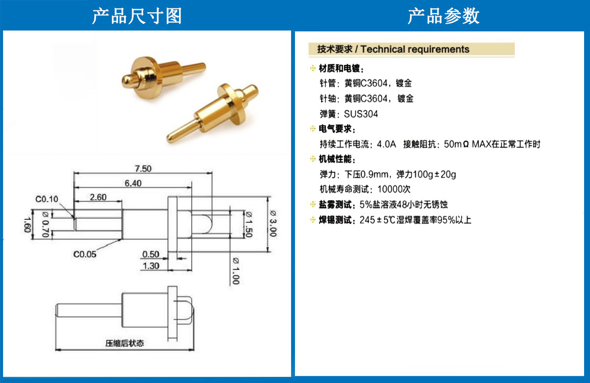 3.0*7.5電極針 當(dāng)前位置:首頁 » POGO PIN充電彈簧頂針 » 電極針