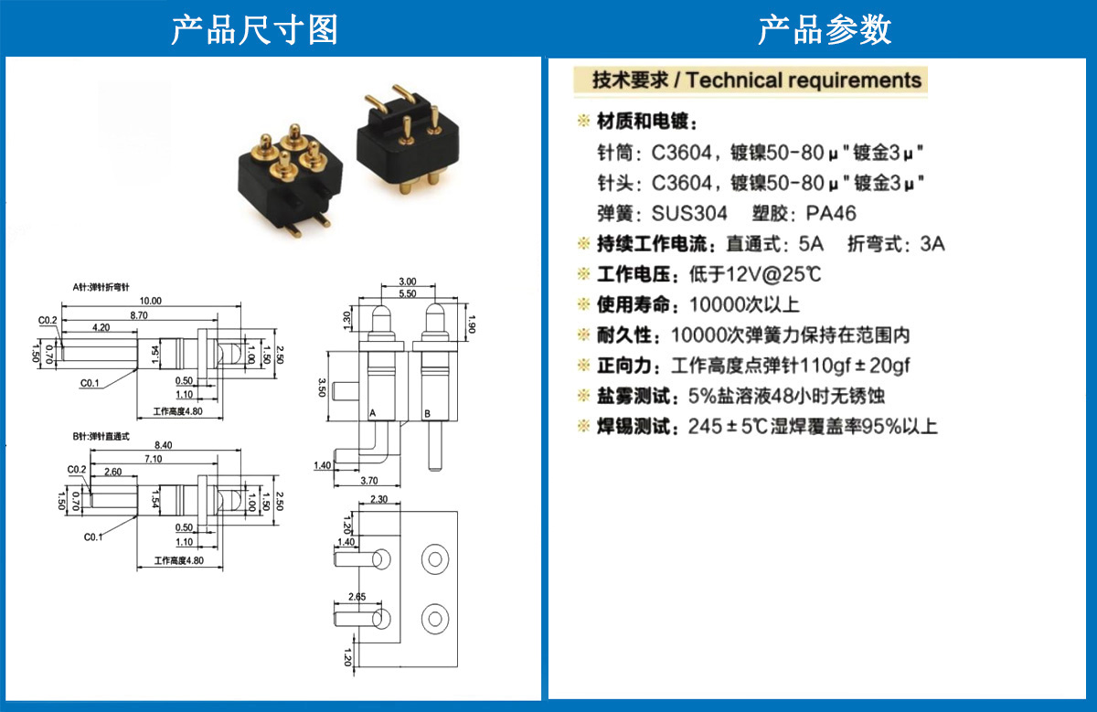 產(chǎn)品介紹:這個針通常用于智能手表,藍牙耳機上的有充電的功能,但是探針總體來說還是測試的