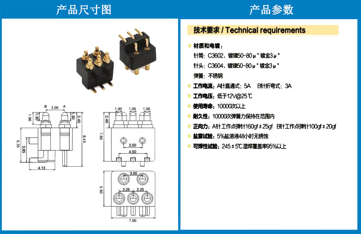 產(chǎn)品介紹:這個(gè)針通常用于智能手表,藍(lán)牙耳機(jī)上的有充電的功能,但是探針總體來說還是測試的