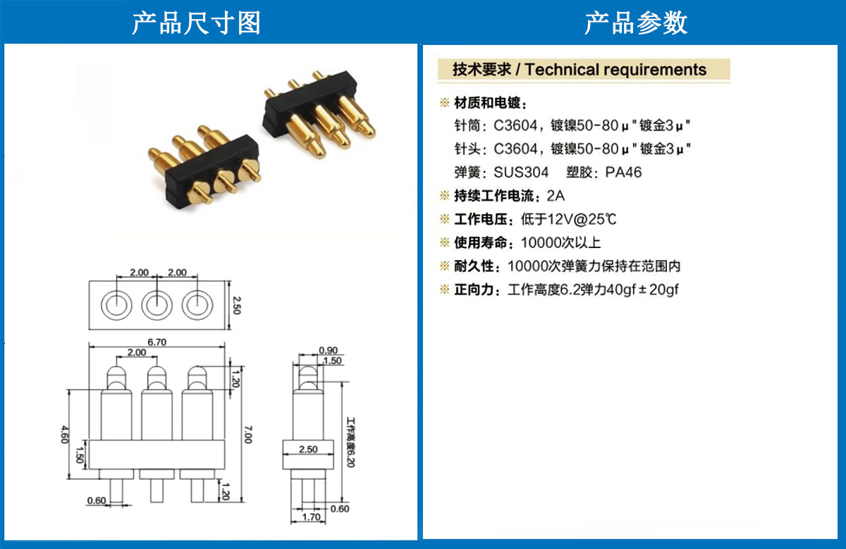 產(chǎn)品介紹:這個(gè)針通常用于智能手表,藍(lán)牙耳機(jī)上的有充電的功能,但是探針總體來說還是測試的