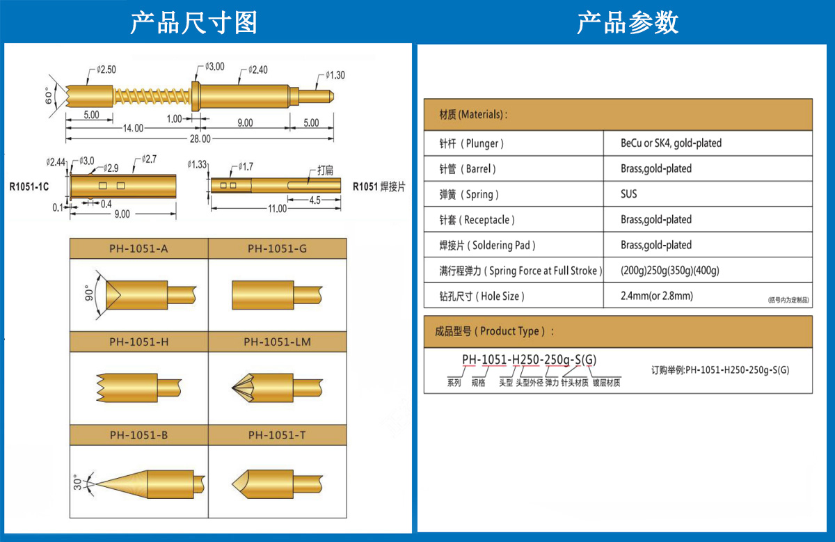 不同頭型的華榮華P125導(dǎo)電頂針有什么特點(diǎn)?