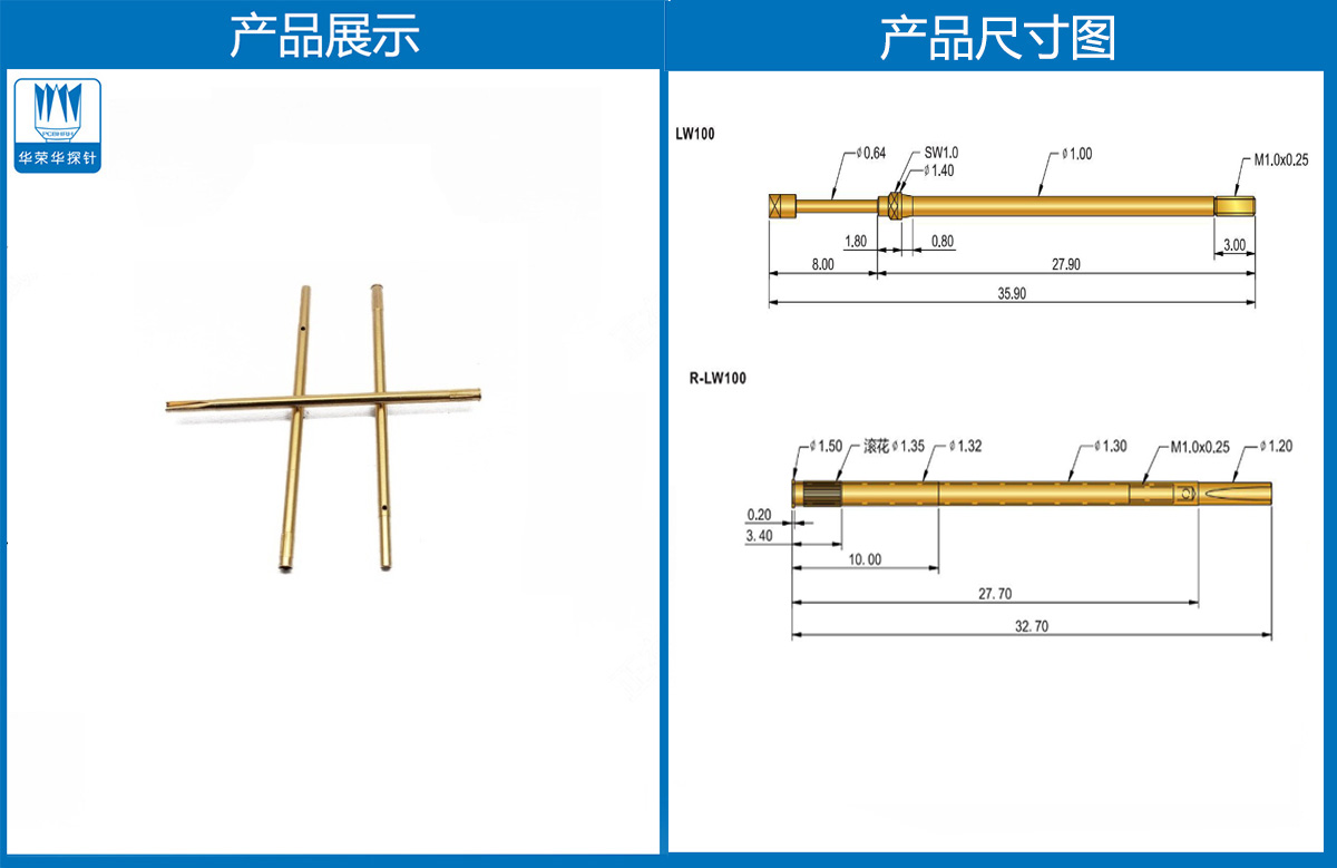 產(chǎn)品簡介:R-LW100線束針套,1.30mm測試針套、總長32.70mm、彈簧針、頂針、探針