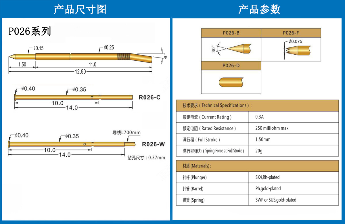 測(cè)試探針 P026 當(dāng)前位置:首頁 » PCB測(cè)試探針 » P026探針系列